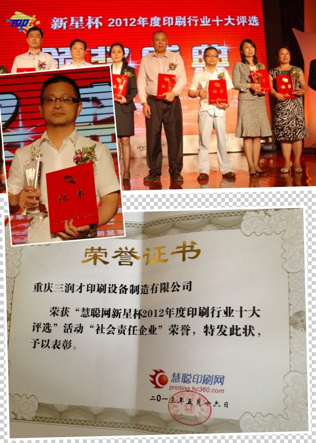 2012年度印刷行業(yè)十大評(píng)選行業(yè)社會(huì)責(zé)任企業(yè)獎(jiǎng):重慶三潤(rùn)才印刷設(shè)備制造有限公司
